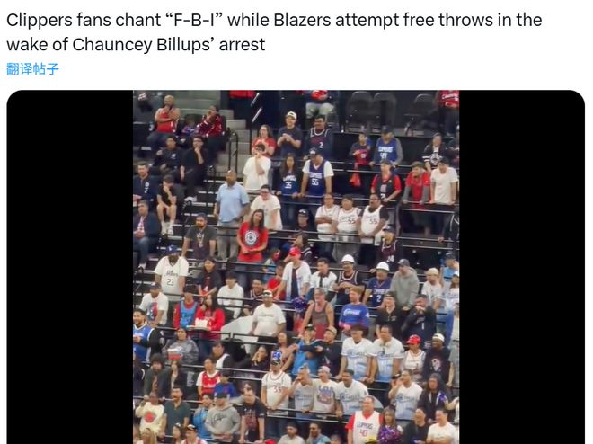 NBA记者Ben Golliver晒出视频,当开拓者球员罚球时,快船主场球迷齐声喊:“FBI。”
