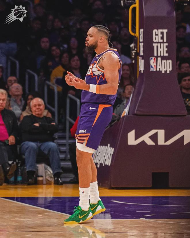 狄龙本赛季场均21.5分3.2篮板1.7助攻1.7抢断!格雷森-阿伦因病缺阵,布克打一节伤退,残阵太阳成功压制湖人。第三节狄龙继续跟东契奇飙分,三节还没打完,两人都砍下30+!湖人依然失误不断,下半场前5分钟出现5次失误。