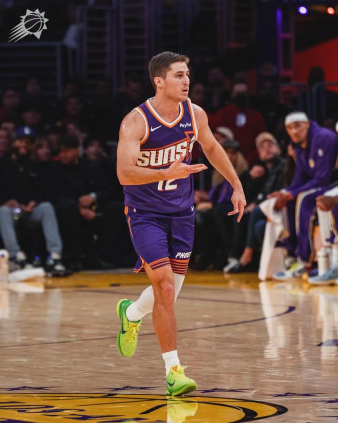 第二节布克并未登场,太阳官方宣布,布克遭遇腹股沟伤势,提前退出本场比赛。太阳防守强度提升,湖人半节出现5次失误,太阳完成反超。狄龙暴走,单节9投7中砍下15分。上半场狄龙16投11中,独得23分2篮板1助攻1抢断。