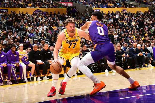 湖人:东契奇38分11板5助、里夫斯16分4板3助、克内克特13分4板、艾顿12分9板、詹姆斯10分3助。
