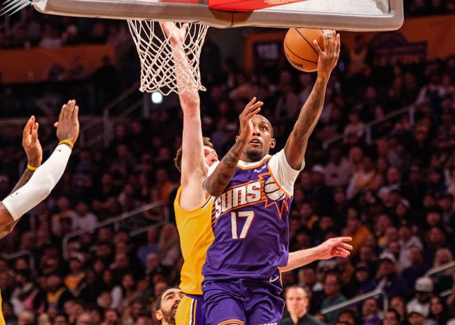 东契奇失误确实有点多,双方僵持了几分钟,布鲁克斯跳投+反击展开攻势,东契奇继续失误,马威暴扣+吉莱斯皮三分球残酷回应!东契奇单打不解渴,布鲁克斯和奥尼尔在节末继续扩大分差,半场太阳66-52领先湖人。东契奇上半场拿到27分,但太阳这边布鲁克斯也砍下23分!进入下半场,马威继续暴扣,古德温和布鲁克斯打疯了,弹无虚发!东契奇命中三分稍稍止血,马威又来暴扣!后半段奥尼尔和布鲁克斯继续下三分雨,湖人球员已经有些消极情绪,只剩老詹在强攻造犯规。