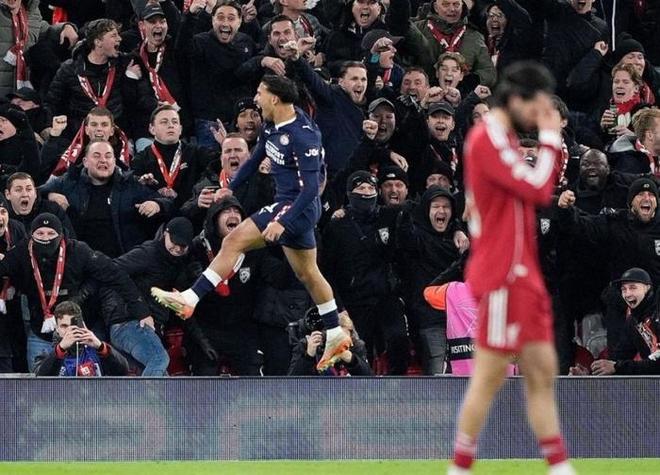 易边再战,利物浦虽然依旧在控球率和射门次数上占据优势,但后防线漏洞百出。第56分钟,蒂尔前插破门帮助埃因霍温再度反超。第73分钟,科纳特防守不力,德里乌赫补射破门。而在伤停补时第1分钟,埃因霍温右路进攻,利物浦中路门户打开,德里乌赫无人盯防一脚抽射完成梅开二度,利物浦最终1-4惨败。